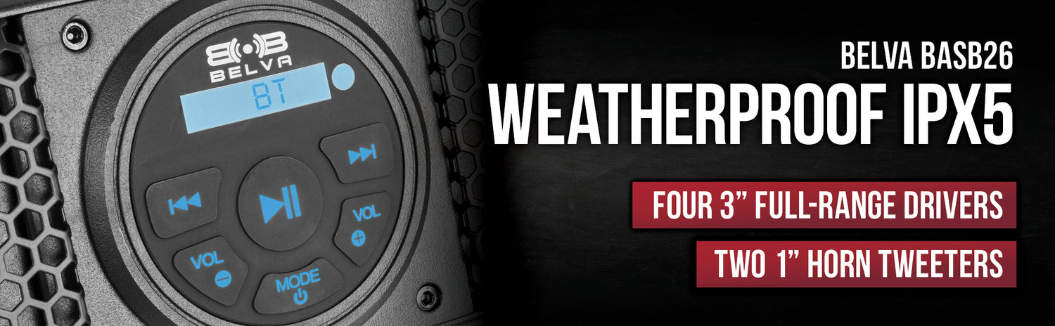 - Four water-resistant 3.5" full-range speakers and two 1" tweeters