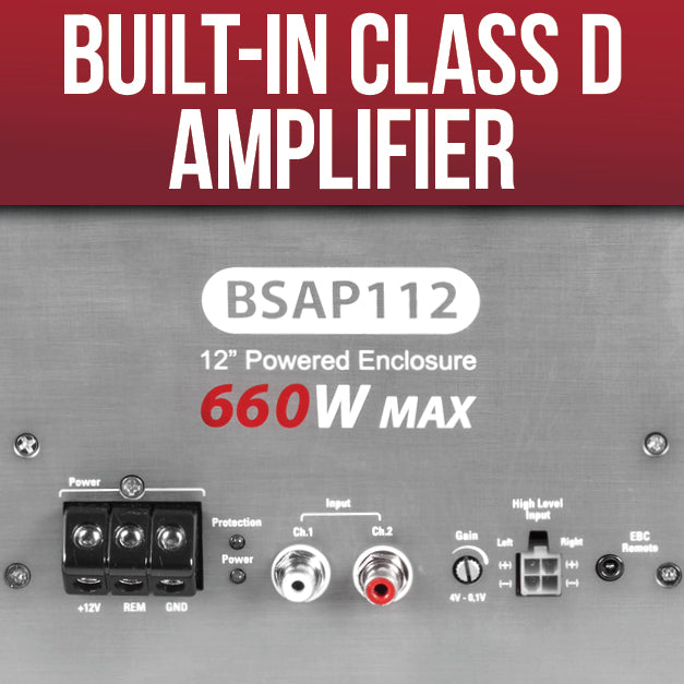 - Single 12" Loaded Amplified Ported Subwoofer Enclosure