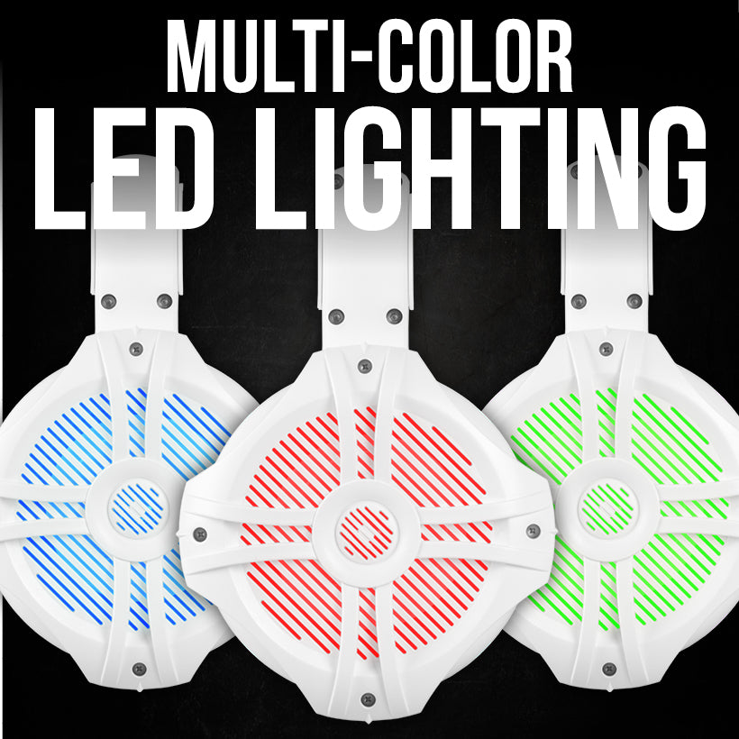 - 6-1/2" Marine 2-way Coaxial Tower Speakers with Multi-Color LED Lighting