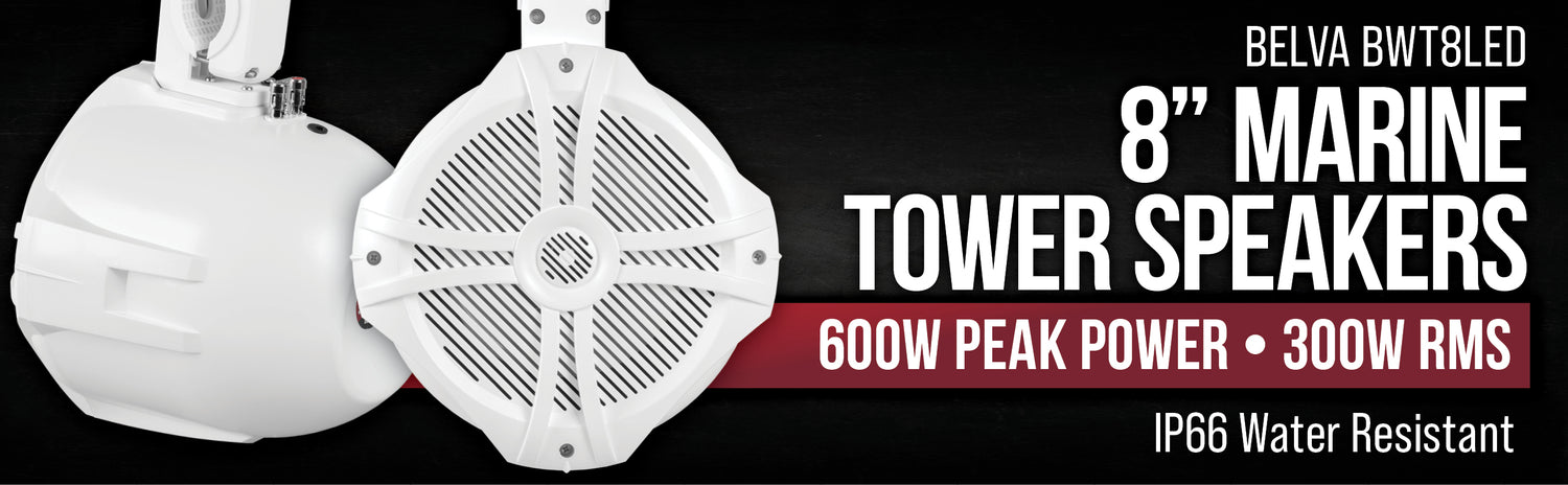 - 8" Marine 2-way Coaxial Tower Speakers with Multi-Color LED Lighting