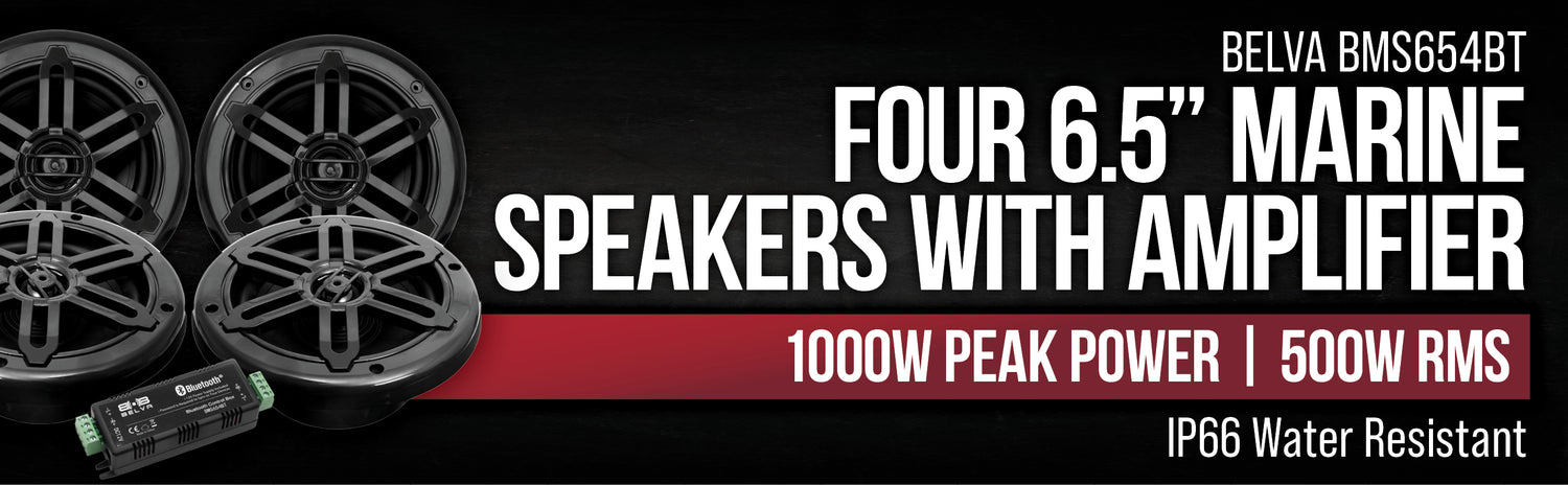 - System includes a 4-Channel Bluetooth Amplifier and two pairs of 6.5" marine speakers