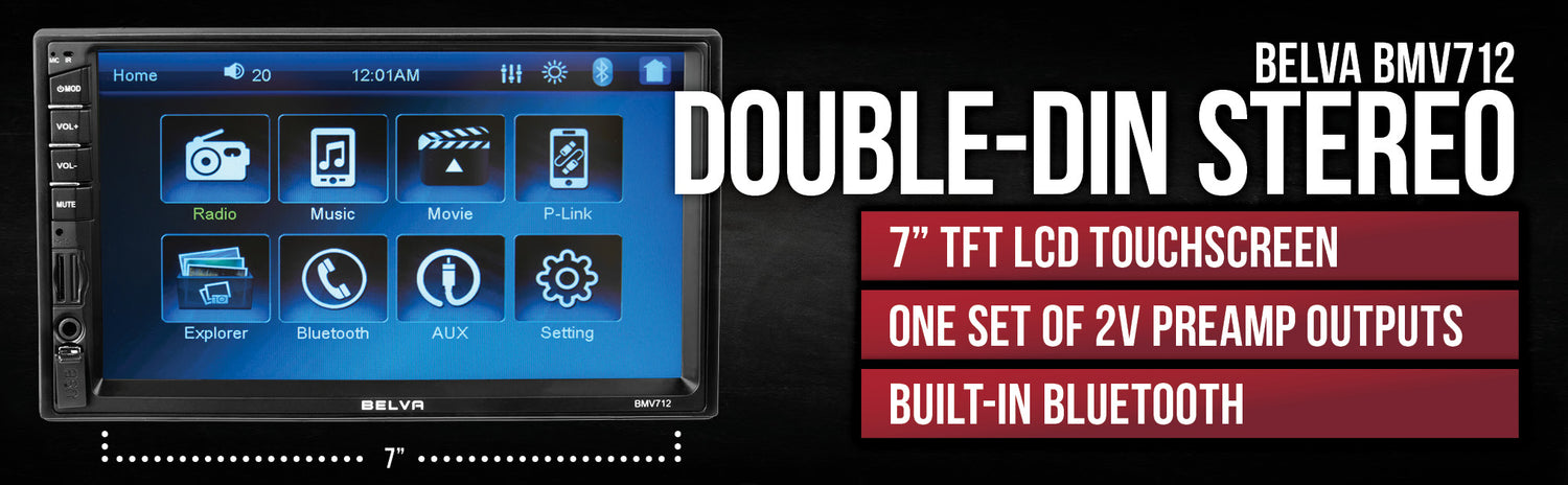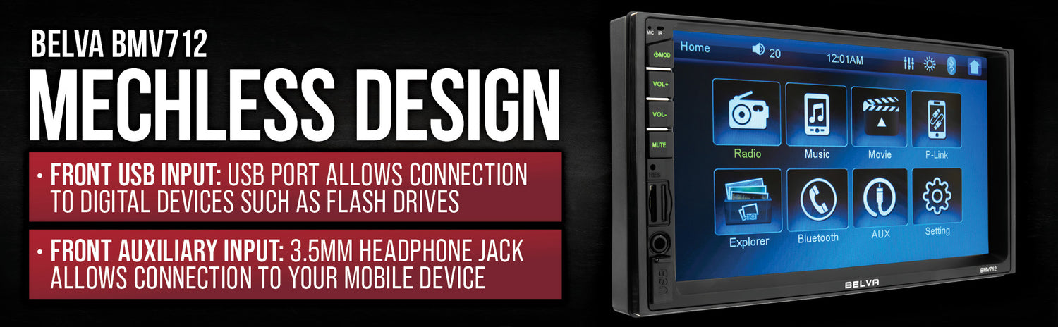 - Double DIN In-Dash Bluetooth Mechless Car Stereo Receiver with Remote