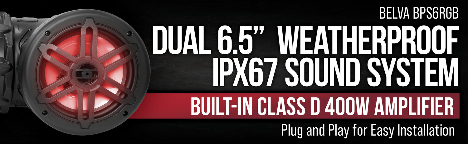 - Bluetooth Enabled, Dual 8-inch ATV/UTV/Powersports Sound System with LED Lights and Remote